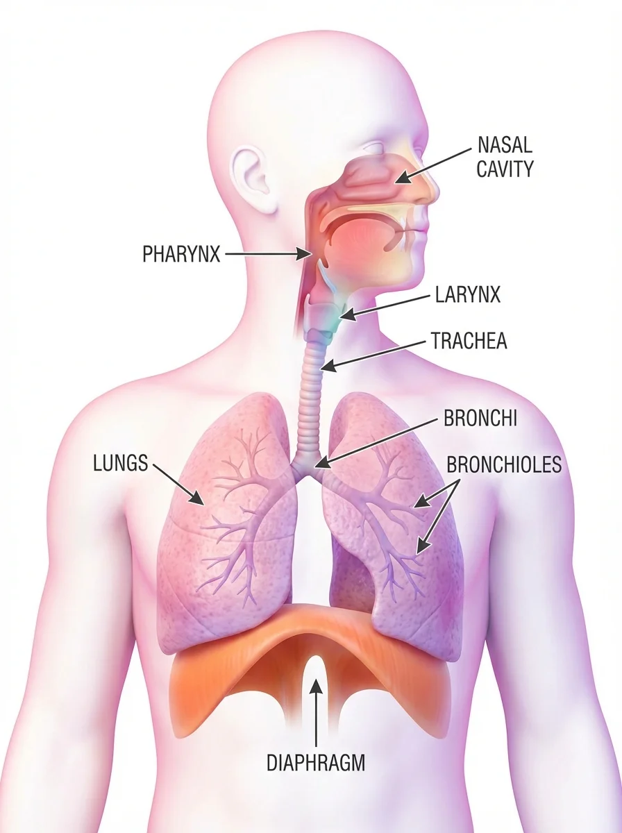 Notice how the airways branch like a tree. Air travels from the single trachea to millions of alveoli.