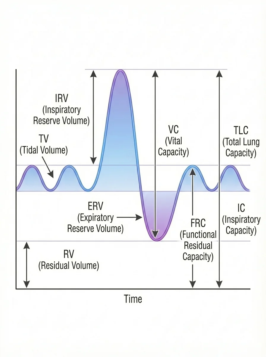This graph shows how different volumes and capacities relate to each other. Notice how VC excludes RV, but TLC includes everything.