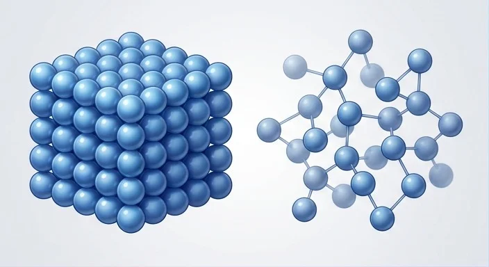 Window glass looks solid but its molecules are scattered randomly—that's what makes it amorphous instead of crystalline.