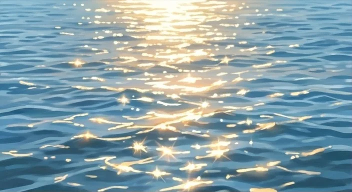 Water shimmers as ripples break sunlight into countless dancing reflections.