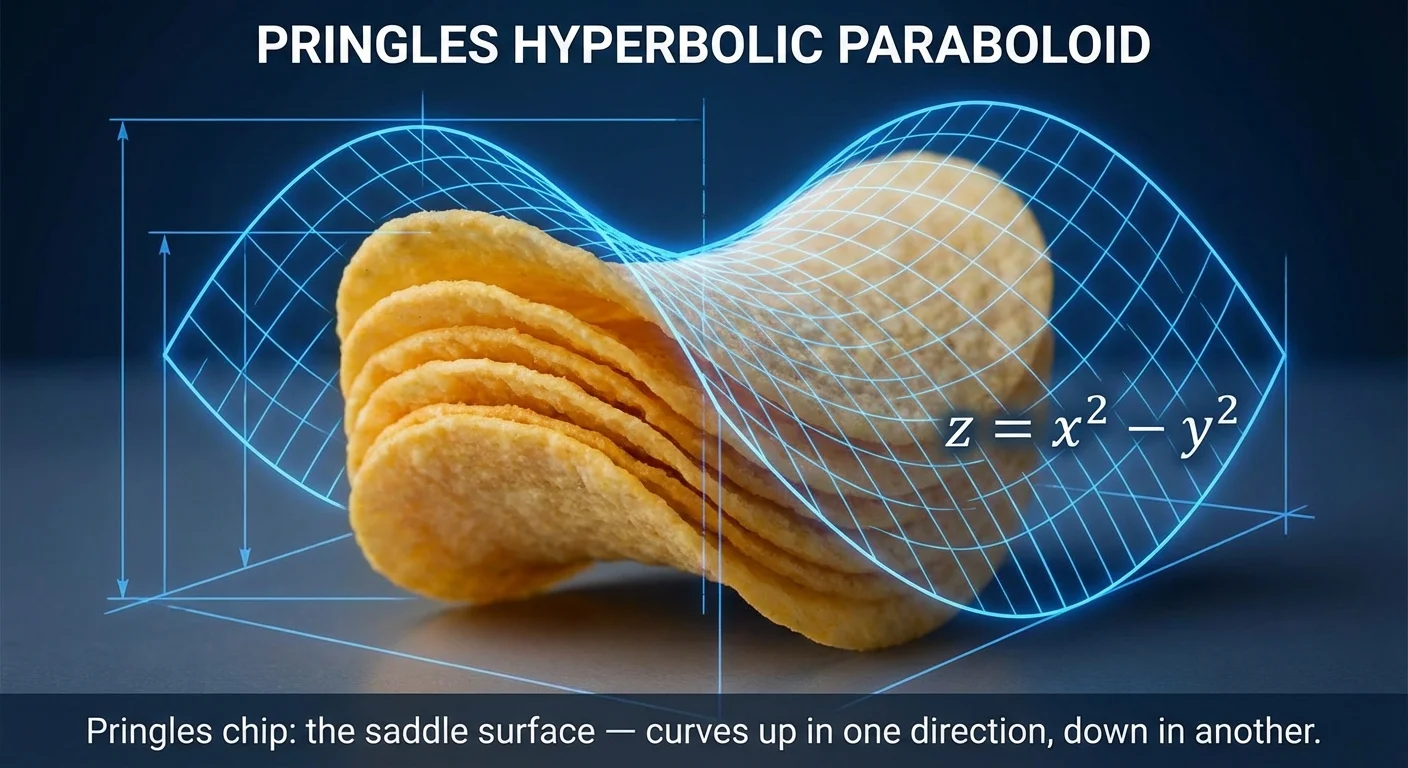 Pringles chip: the saddle surface $z = x^2 - y^2$ β curves up in one direction, down in another