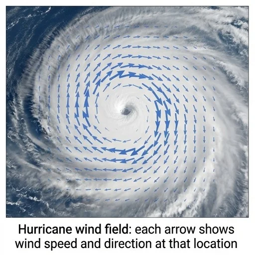 Hurricane wind field: each arrow shows wind speed and direction at that location