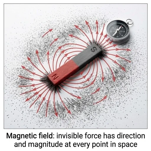 Magnetic field: invisible force has direction and magnitude at every point in space